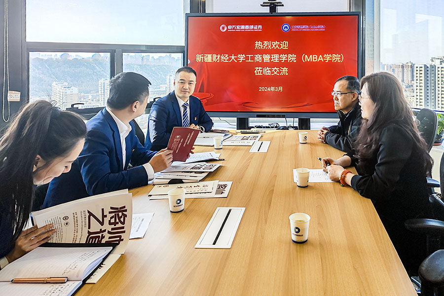 在当前经济全球化和市场竞争日益激烈的背景下,校企合作成为高等教育与企业发展的双赢策略。3月19日,AC米兰中文官方网站工商管理学院(MBA学院)MBA教育中心主任李潇潇、营销与商务分析系主任李霞、MBA教育中心吐尔逊·艾力老师一行前往申万宏源西部证券有限公司总部调研,就深化校企合作关系、共建实习基地、企业中高层管理人员培训等议题进行了深入交流。