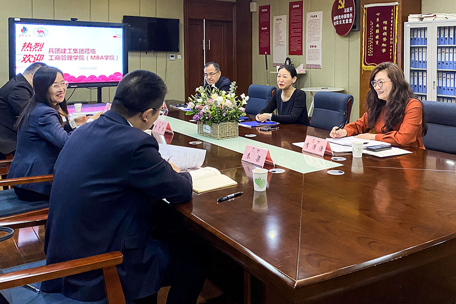 3月22日,新疆生产建设兵团建设工程(集团)有限责任公司(以下简称“兵团建工集团”)一行到工商管理学院(MBA学院)调研座谈。兵团建工集团总经理助理、党委组织部(人力资源部)部长李贵琴,党委组织部(人力资源部)副部长崔磊,党委组织部(人力资源部)部门主管秦梁,工商管理学院(MBA学院)副院长史青、MBA教育中心主任李潇潇、吐尔逊·艾力老师参加座谈。