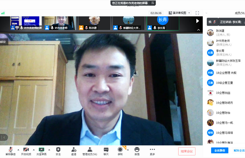 在互动交流环节,叶作亮教授与我院师生进行了热烈的交流,针对老师们提出的问题和未来的研究方向谈了看法和建议,并表示今后与我院教师可以进一步进行学术交流。李长青副院长向叶作亮教授表达了感谢,并邀请他在适当的时候来疆为我院师生做学术和教学指导。