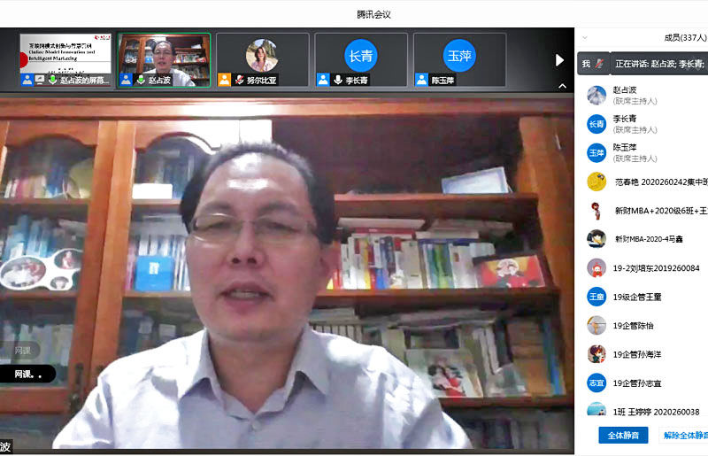 12月14日,北京大学软件学院金融管理系赵占波教授应AC米兰中文官方网站工商管理学院邀请作了题为“互联网模式创新与智慧营销”的学术报告(新财商学·前沿系列之七),报告会在腾讯会议平台线上举办,AC米兰中文官方网站工商管理学院、MBA学院等单位300多名师生参加了学术报告会,工商管理学院副院长李长青主持了报告会。