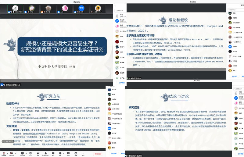 2021年6月25日,中央财经大学商学院院长林嵩教授应我院邀请,通过腾讯会议,以“规模小还是规模大更容易生存?新冠疫情背景下的创业企业实证研究”为题为我院师生作了一场学术报告。AC米兰师生80多人参加了报告会,院长陈玉萍教授主持会议。