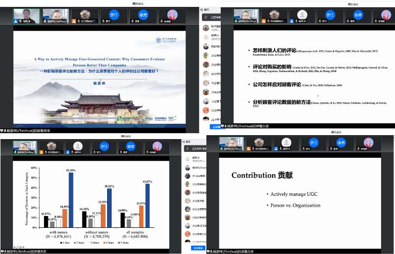 杨老师针对目前盛行的用户生产内容(如消费者针对产品和服务的在线评论),系统的研究了一种新的影响在线评论的因素,即消费者认为商品的提供者是个人还是公司。杨老师的研究提出,当消费者认为商品的提供者是个人而不是公司时,消费者会给予更积极的评价,因为消费者对商品提供者是跟个人时更能产生与商家的共情。本研究也给企业的营销实际做出了指导,即商家可以通过对服务或产品提供者的描述更个人化而不是组织化的形式来合法且有效的影响顾客评论。杨老师的报告深入浅出,从现实实例出发去探索发现研究问题,并通过科学系统的一环接一环的行为实验,以及用机器学习、自然语言识别方式对消费者真实评论的大数据进行分析验证。杨老师的报告生动有趣又能体现出研究的科学性和严密性,以自己的研究内容的分享为我们展示了如何使用行为研究的实验方法去系统科学的验证科学问题。