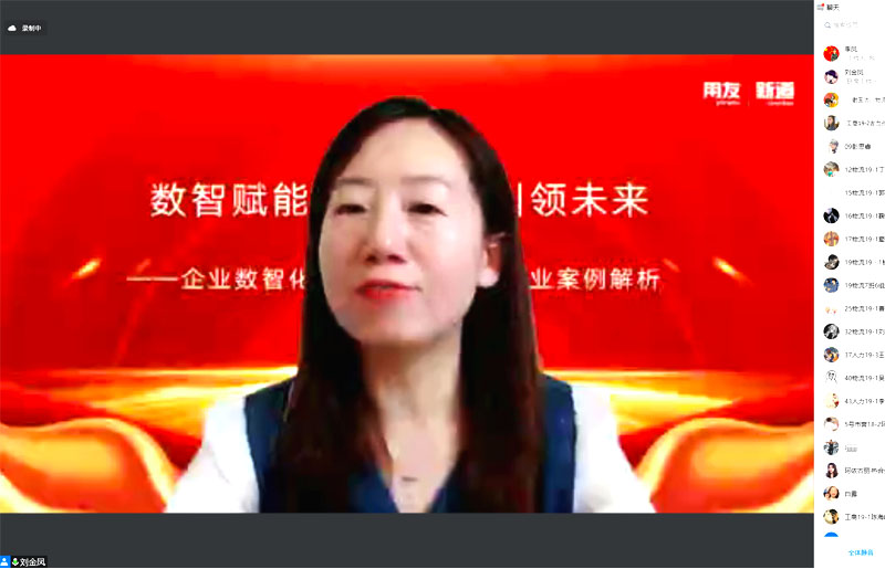 刘金凤老师首先分享了用友集团和新道科技有限公司发展历史的两个短片,然后从数智营销产业发展趋势、行业案例、数智营销场景及未来展望四个维度,从数字技术是中国的发展新引擎、数智转型是中国企业新航向、数智人才是中国数智转型新刚需、数智化人才培养是中国教育的时代责任等方面深度阐释了数智营销的发展趋势,并以飞鹤乳业、统一企业、郎酒集团、海天味业、北京稻香村等五个用友集团服务的大型龙头企业为行业案例深刻解析了数智模式如何赋能企业,从营销自我-品牌价值、数智时代消费者变化、网红直播的营销逻辑、短视频让人上瘾的“秘密”等不同场景展现数智营销对我们生活的影响,最后从营销与新技术的紧密结合等方面总结展望了数智营销的未来发展趋势。