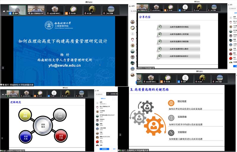 2022年6月2日晚上,西南财经大学工商管理学院教授、博士生导师,西南财经大学人力资源管理研究所所长杨付教授,接受我院邀请以《如何在理论高度下构建高质量管理研究设计》为题,为我院师生进行了一场精彩的在线学术分享。熊霁副院长(援疆)主持了学术会议。