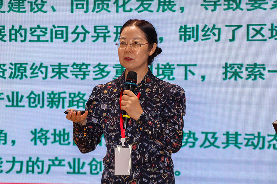 华东理工大学商学院博士生导师孔令丞教授的报告题目是《中国区域产业创新路径:关联性、复杂性与地区多样化--基于产品空间理论》。她在发言中提出了从产品空间演化视角,将地区的比较优势及其动态变化视为异质性,探寻基于比较优势能力的产业创新路径的研究思路,基于大量的文献和数据向大家展示了中国产品空间网络构建与地区比较优势演化的结果,结合产品空间图形象地向大家介绍了地区产业创新路径的特点。