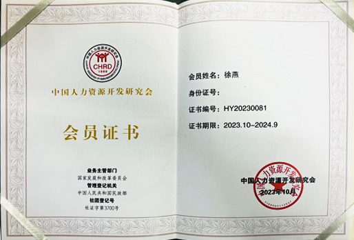 徐燕教授的会员证书