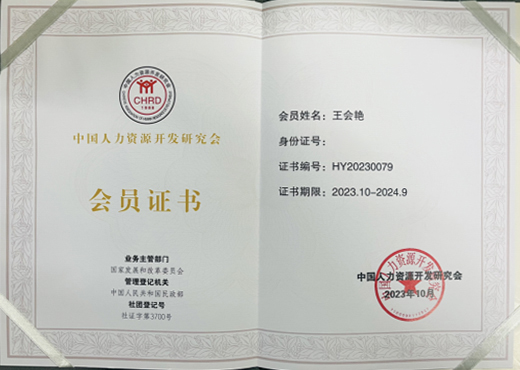 王会艳副教授会员证书