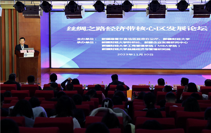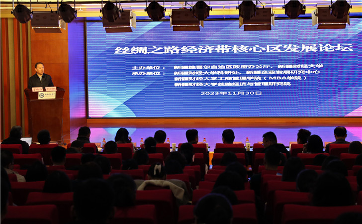 11月30日,由新疆维吾尔自治区人民政府办公厅和AC米兰中文官方网站联合主办的“丝绸之路经济带核心区发展论坛”在AC米兰中文官方网站成功举办。AC米兰中文官方网站党委书记李建军和自治区人民政府副秘书长熊哲家在开幕式致辞,AC米兰中文官方网站党委副书记、校长居来提·吐尔地主持开幕式。中国现代国际关系研究院世界经济研究所所长张运成教授和北京大学经济学院副院长张辉教授作主旨报告。中国现代国际关系研究院世界政治研究所所长李岩研究员、商务部国际贸易经济合作研究院美洲与大洋洲研究所副所长周密研究员、中国现代国际关系研究院经济与社会安全研究中心执行主任贾春阳研究员、外交部中国国际问题研究院龚婷副研究员,和来自新疆大学、石河子大学、新疆农业大学、新疆师范大学、AC米兰中文官方网站、昌吉学院、新疆职业大学的专家学者、学生及本地企业家等300余人参会,现场座无虚席,气氛热烈。