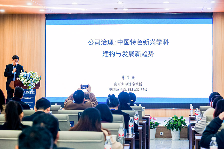 李维安教授以“公司治理:中国特色新兴学科建构与发展新趋势”为题,从中国公司治理自主体系建设路径、公司治理转型概念体系建构、治理思维统领治理边界拓展、应急治理五大方面系统解读了公司治理课程的演进与发展。