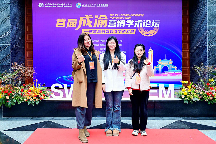 12月1日-12月3日,首届成渝营销学术论坛(以下简称论坛)在成都举行,论坛由中国高等院校市场学研究主办,西南交通大学经济管理学院承办,教育部市场营销专业虚拟教研室协办。论坛以“数智营销创新与学科发展”为主题,围绕成渝地区数智化发展、企业营销创新和营销学科发展等内容展开探讨与交流。我院营销与商务分析系古丽扎尔·艾赛提、张重、盛慧三位老师参加了论坛。