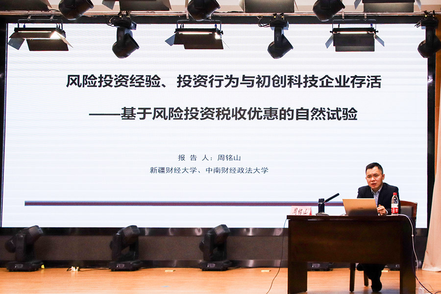 周铭山教授从研究动机、研究贡献、理论假说、实证检验、结论及建议五个方面,分享了指导团队撰写的论文“风险投资经验、投资行为与初创科技企业存活——基于风险投资税收优惠的自然实验”和“国有资本、股权联结与企业自主创新”。
