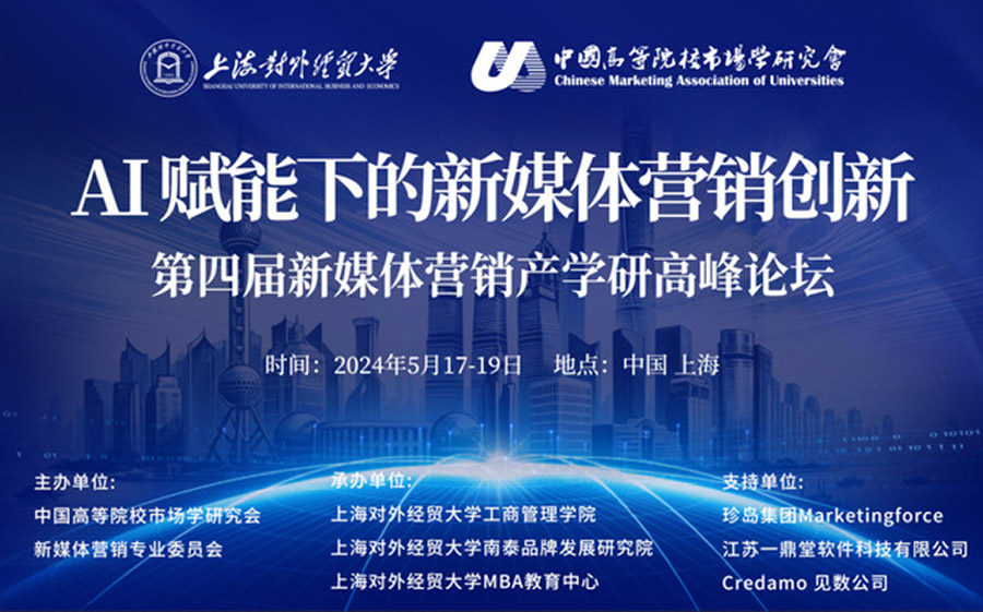5月17日至19日,由中国高等院校市场学研究会新媒体营销专业委员会和上海对外经贸大学联合主办的第四届新媒体营销产学研高峰论坛在上海顺利召开。本次会议以“AI赋能下的新媒体营销创新”为主题,深入探讨在AI时代背景下,企业如何开展新媒体营销和品牌营销创新、推动品牌建设、提升营销效果等市场营销教学研究与理论创新的前沿领域和热点问题。