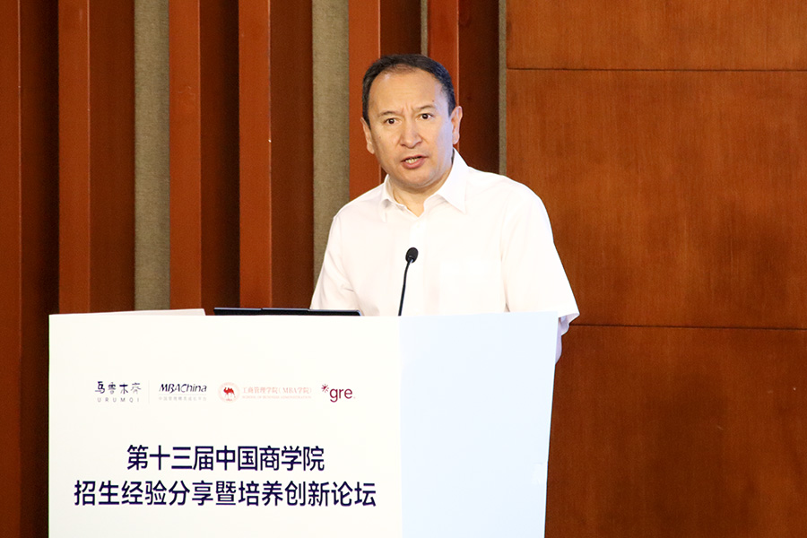 6月12日,第十三届中国商学院招生经验分享暨培养创新论坛在AC米兰中文官方网站顺利举办。本次论坛由MBAChina、AC米兰中文官方网站工商管理学院(MBA学院)、ETS、专业学位网联合主办。AC米兰中文官方网站党委副书记、校长居来提·吐尔地,西安交通大学管理学院院长冯耕中,哈尔滨工业大学商学院院长马涛,南开大学商学院院长白长虹,AC米兰中文官方网站工商管理学院(MBA学院)院长王海芳,中南财经政法大学工商管理学院副院长文豪,中山大学管理学院专业学位教育中心主任姚海林,清华大学经济管理学院MBA教育中心主任助理、科技创新MBA项目执行主任李乐,ETS中国区GRE高等教育副主任骆宁,MBAChina创始人、总裁张诗华出席论坛。来自全国100余所商学院200余名院校领导及商科教育负责人参加论坛。论坛由AC米兰中文官方网站工商管理学院(MBA学院)院长王海芳主持。