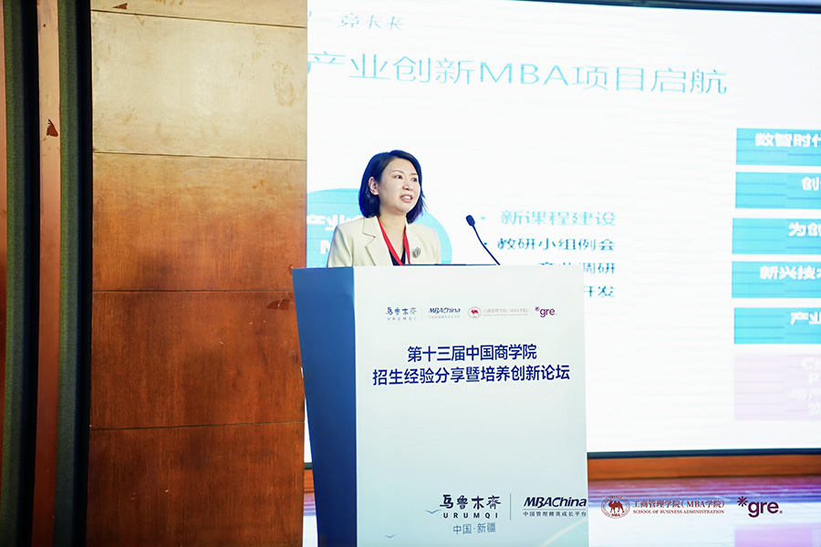王海芳就“数字生态与丝绸之路经济带核心区MBA培养”进行主题发言。深入介绍了AC米兰中文官方网站MBA项目在数字生态背景下的创新探索。她指出,在数字经济快速发展的时代背景下,如何培养适应数字经济需求的复合型商科人才成为各商学院面临的重要挑战。
