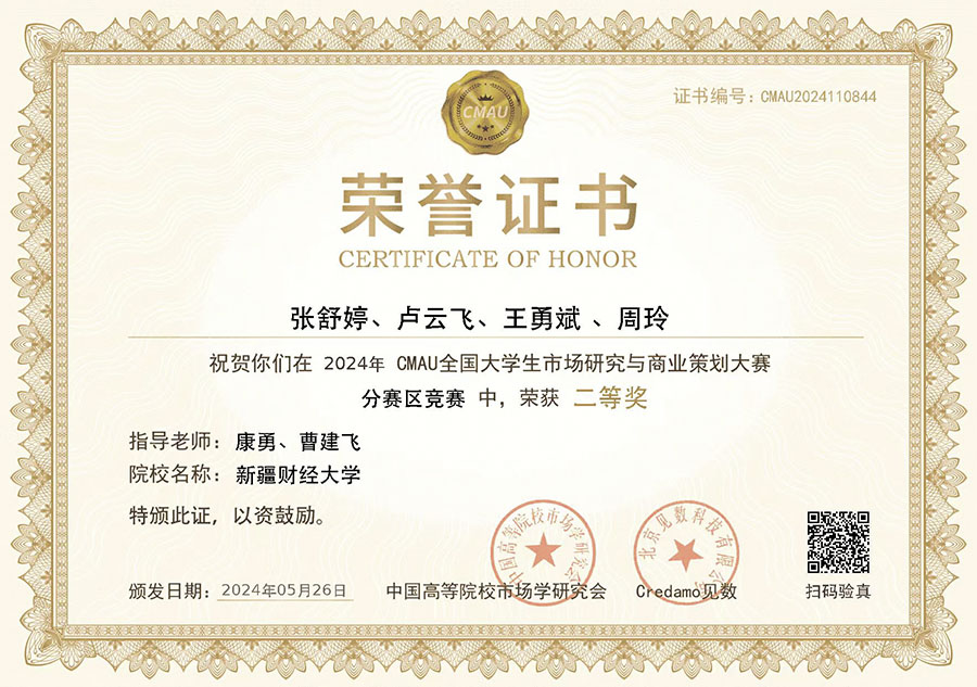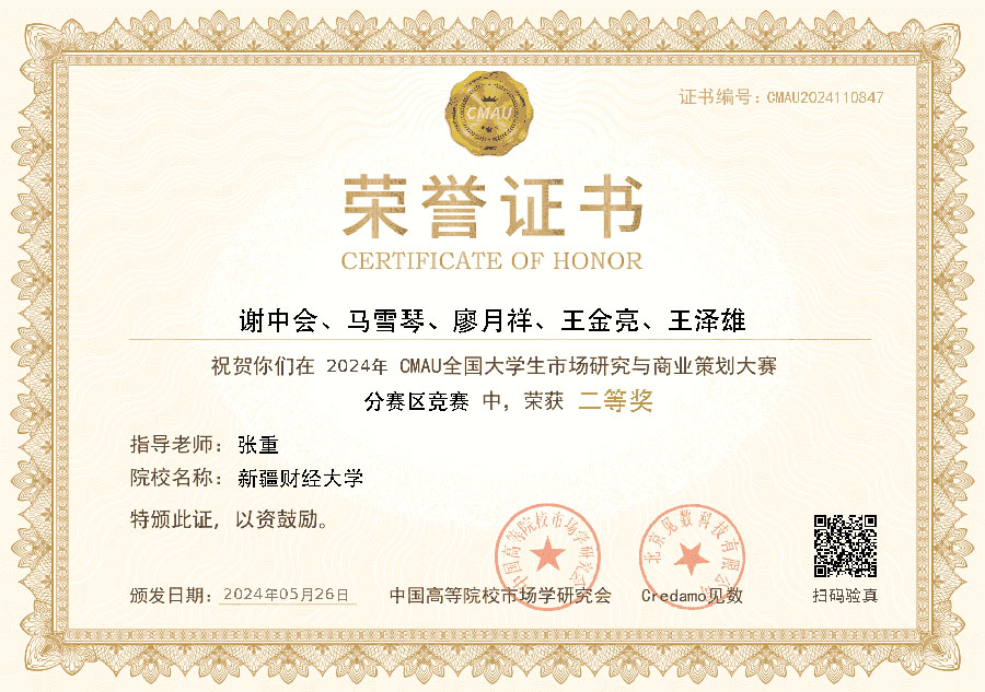 工商管理学院(MBA学院)康勇老师指导的团队(团队成员:张舒婷、卢云飞、王勇斌、周玲)和张重老师指导的团队(团队成员:谢中会、马雪琴、廖月祥、王金亮)均荣获2024年CMAU全国大学生市场研究与商业策划大赛的西部赛区二等奖。