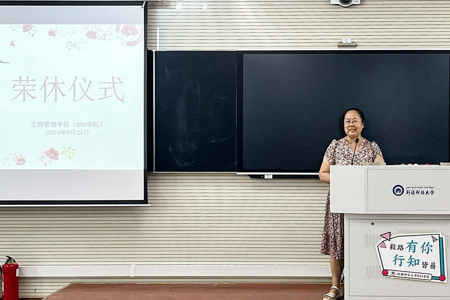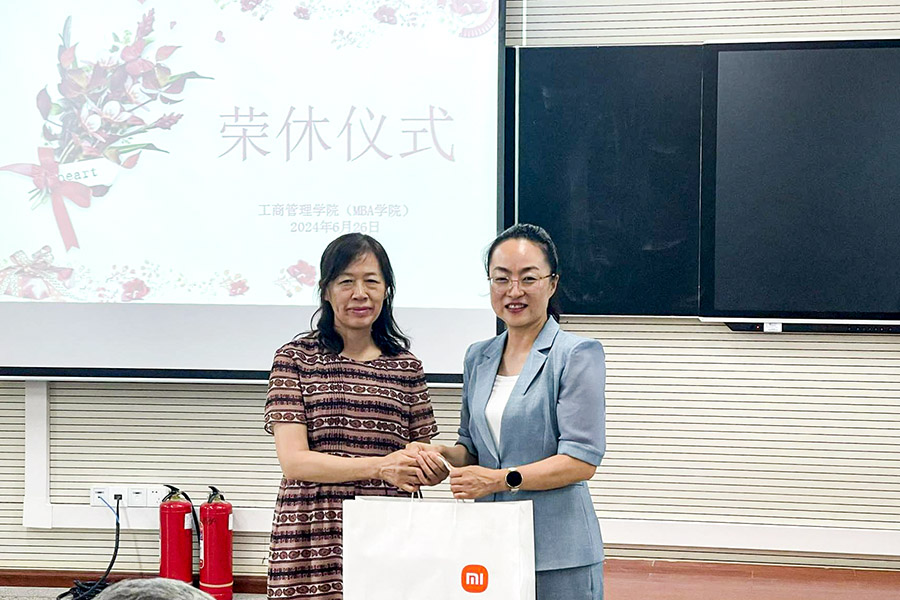 最后,工商管理学院(MBA学院)全体教职工与两位退休教师合影留念。在一片欢声笑语中,荣休仪式圆满落幕。两位退休教师带着满满的祝福和回忆,踏上了新的人生旅程。而工商管理学院(MBA学院)的全体教职工也将继续传承和发扬他们的教育精神,为学院的发展贡献自己的力量。