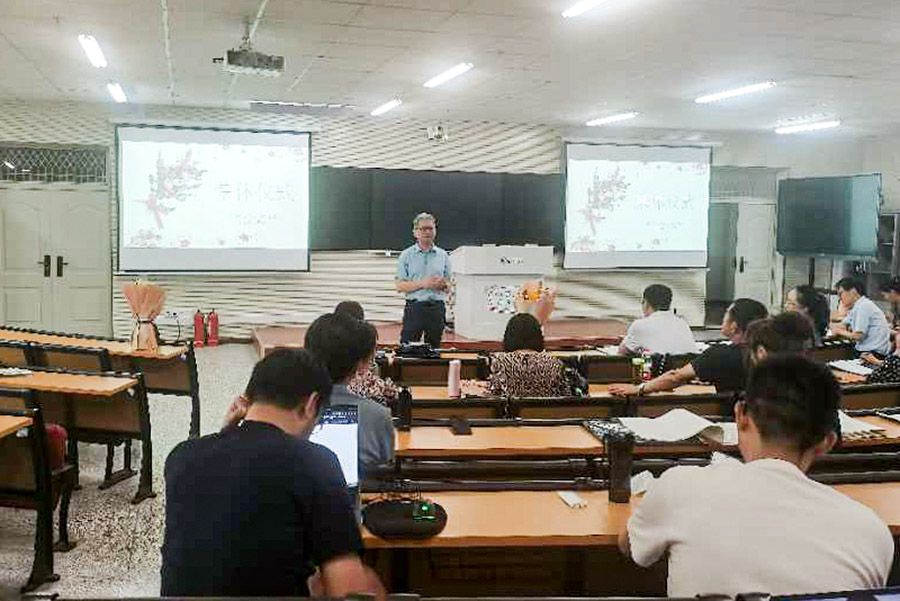 仪式第三项,学生代表们手捧鲜花,为陈玉萍教授和尔肯副教授献上最真挚的敬意。他们与两位教师合影留念,记录了这一难忘的瞬间。