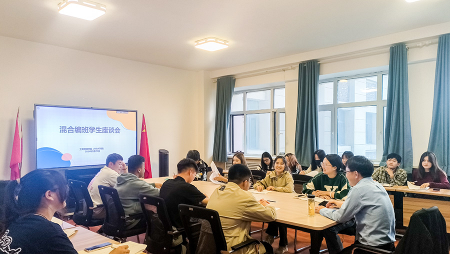 为了充分了解我院混合编班(简称“混班”)学生的真实学习情况,提升课堂教学效果及人才培养质量。工商管理学院(MBA学院)于9月25日在至善楼411会议室组织召开了混班学生座谈会。本次座谈会由副院长宋明珍主持,教学秘书马丽老师、26名学生代表参会,参会学生实现我院大一至大三年级四个专业所有班级全覆盖、疆内外与民汉学生全覆盖。