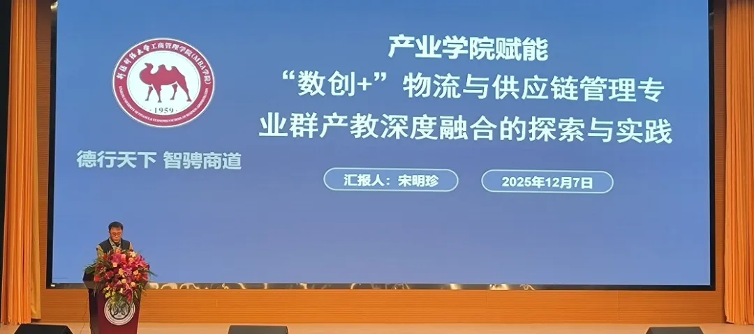 宋明珍副院长以《产业学院赋能“数创+”物流与供应链管理专业群产教深度融合的探索与实践》为题做了主题报告。首先,介绍了学院“2+1”的商科人才培养体系,面向丝绸之路经济带核心区建设与新疆特色优势产业发展需求,推进“数创+”商科人才培养。随后,阐述了AC米兰物流与供应链管理专业人才培养思路与课程体系。最后,重点分享了AC米兰数智供应链产业学院赋能人才培养的实施路径,具体包括校企课程共建、产教融合特色班、职业资格认证与企业案例开发等工作。