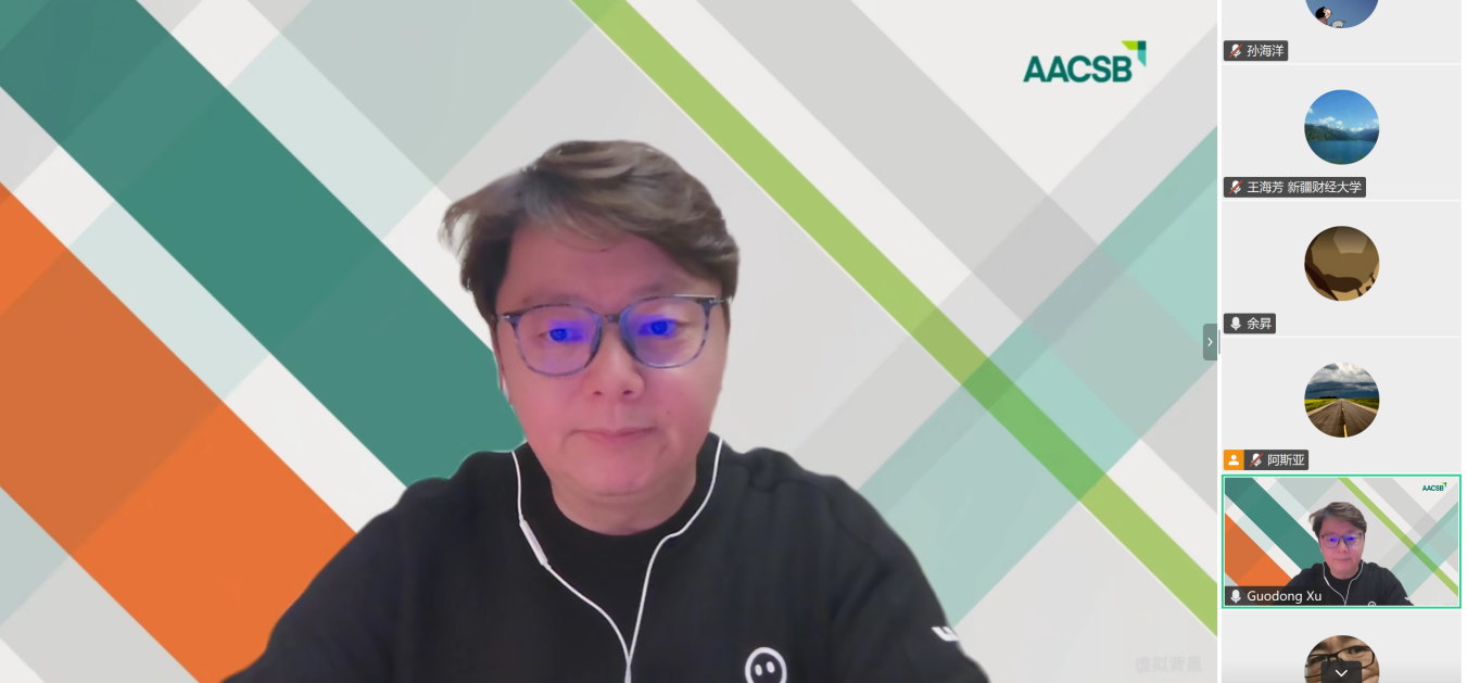 为推进学院AACSB国际认证工作,12月25日学院邀请AACSB国际(The Association to Advance Collegiate Schools of Business)东亚区负责人,徐国栋先生(Guodong Xu, Regional Head, East Asia),进行AACSB国际认证专题在线培训。徐国栋先生是AACSB认证领域的资深专家,长期负责亚太地区商学院的认证评审与指导工作,对认证标准、流程、评审重点及常见问题有着深刻的理解和丰富的实战经验。学院全体教师参加了本次学习培训。