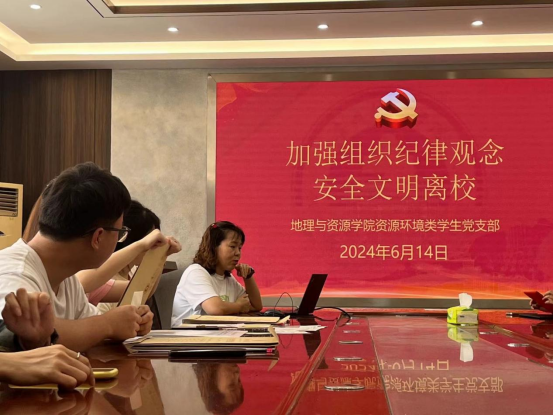 6月14日,必赢242net官网资源环境类学生党支部在学院会议室开展了积极倡导加强组织纪律观念,确保学生安全文明离校的会议,由资源环境类学生党支部书记徐秀月主持,必赢242net官网资源环境类毕业生党员参会。