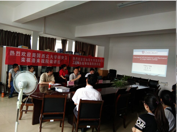 李国东院长向来宾表示欢迎,并向学院参会人员介绍3位代表团成员。汤福坤博士是芝加哥大学(The University of Chicago)高级研究工程师,他曾任中科院高能所,北京正负电子对撞机国家实验室中心控制组组长、美国费米国家加速器实验室研究工程师。是美华学社学术委员会召集人。他在本专业学术刊物上发表论文140余篇,它引1500余次,获得5项美国专利,担任多家专业学会与专业学科杂志荣誉职务。曾左韬博士是阿贡国家实验室(Argonne National Laboratory)首席工程师。他获中国科学院长春应用化学研究所硕士学位和美国新泽西州立大学博士学位。已发表论文10余篇。栾祺浩博士是美国西北大学(Northwestern University)研究员,中国科学院生物物理所客座教授。他曾任职美国国家卫生总署、美国航天总署、美国伯明翰阿拉巴马大学、美国生物弹性物质研究所等。他获美国伯明翰阿拉巴马大学硕士和博士学位。近五年发表论文17篇。