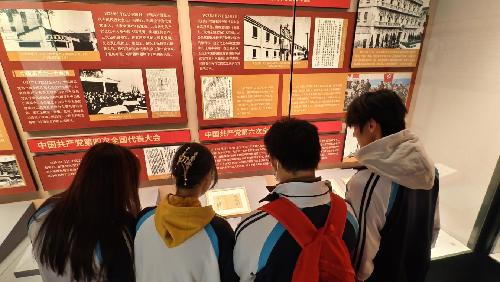 驻足党的四大、六大等会议展板前,同学们重点了解到党的早期全国代表大会已明确对新疆的关注,从革命时期的团结各族群众,到建设阶段的边疆发展布局,清晰感知“党的领导是新疆发展根本保证”的实践逻辑;