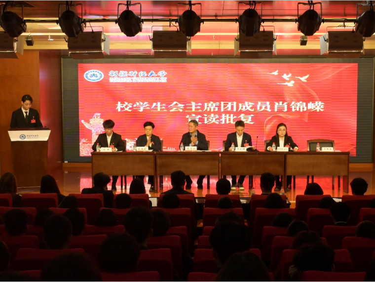 校学生会主席团成员肖锦嵘同学宣读校学生会批复。