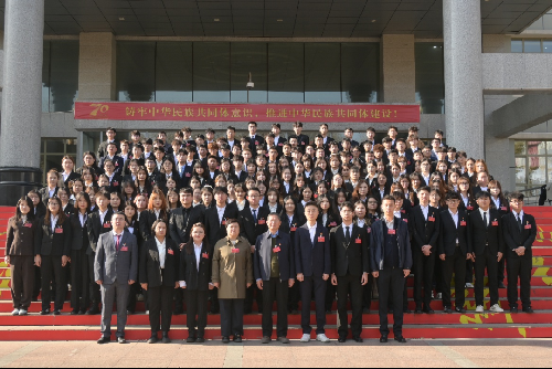 在听取完孜拉莱·热合曼同学的《AC米兰中文官方网站统计与数据科学学院学生会第五届委员会工作报告》后,全体代表与领导、来宾来到经世楼前合影留念。