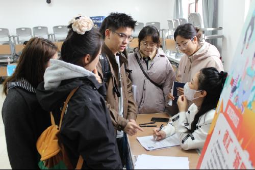 现场人头攒动,热闹非凡。九十多家优质企业齐聚8号楼一楼,涵盖金融、贸易、数据服务等多个领域,为统计、经济、国贸等相关专业的学子们带来了千余个岗位机会。同学们手持精心打磨的简历,满怀期待地穿梭于各个企业展位之间,有的驻足聆听企业宣讲,有的围在HR身边深入交流,还有的在现场设置的简历诊断区接受老师指导,8号楼里的每一处角落都充满着对未来的憧憬。
