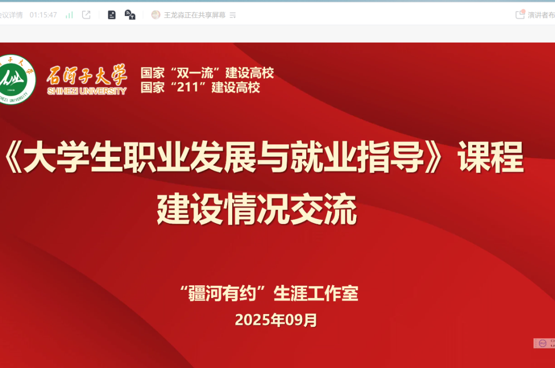 为深入贯彻落实教育部关于本科教育教学审核评估工作的相关要求,进一步提升学校就业指导类课程的规范化建设与教学效果,2025年9月21日下午,党委学生工作部邀请石河子大学从事13年就业研究工作的王龙淼副教授开展“本科教育教学评估就业何为”及“大学生职业发展与就业指导课程建设经验分享”,大学生职业发展与就业指导课程、创新创业课程的30余名教师聆听了线上讲座。此次讲座旨在通过跨校交流,共同探讨如何开展好评估期间的就业授课准备以及就业类课程建设的有效路径,为推动学校高质量发展凝聚共识、汇聚智慧。
